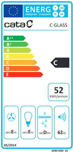 Komínová ke zdi, 600 mm, nerez / sklo, 1 motor K7 Plus 95 W, 3 rychlosti, 400 m³/h (5 Pa), max. hlučnost Lw 62 dB(A), max. tlak 200 Pa, tlačítkové ovládání, LED osvětlení E-14