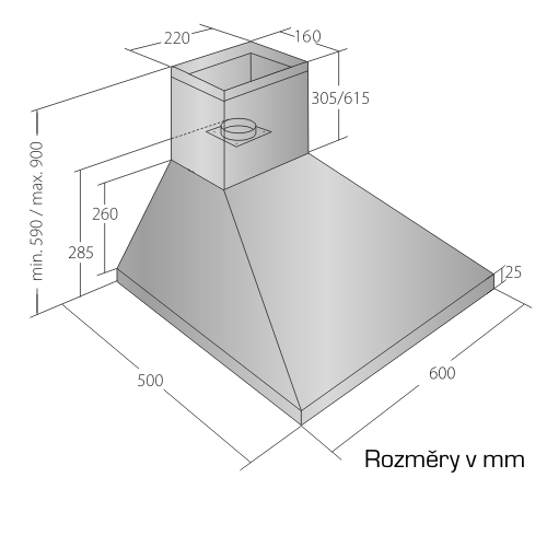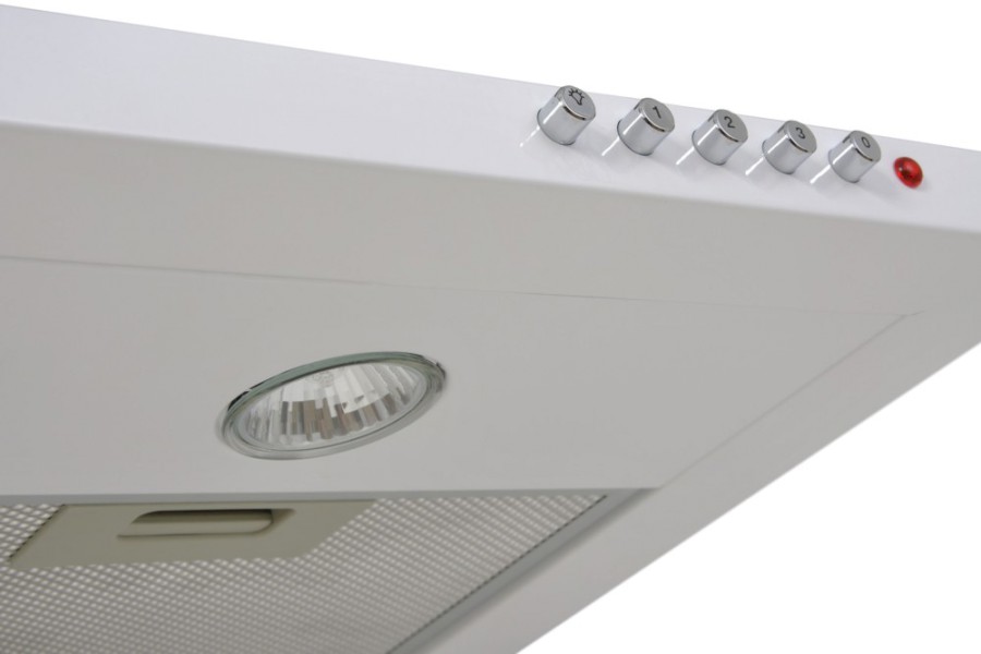 Komínová digestoř ke zdi, šíře 60 cm, bílá, max. výkon 405 m³/h (5 Pa), hlučnost Lw 51 – 61 dB(A), 3 rychlosti, odsávací jednotky mají individuálně vyvažovanou turbínu, motory jsou opatřené vratnými tepelnými pojistkami (při přetížení motoru vypne, po jeho vychladnutí opět sepne), mechanické tlačítkové ovládání, kovové sendvičové tukové filtry, které lze mýt v myčce, možnost práce v odtahovém i recirkulačním režimu, výstupní průměr 150 mm, Výbava: úsporné LED osvětlení 2 × 2 W, zdarma redukce na 120 mm a zpětná klapka