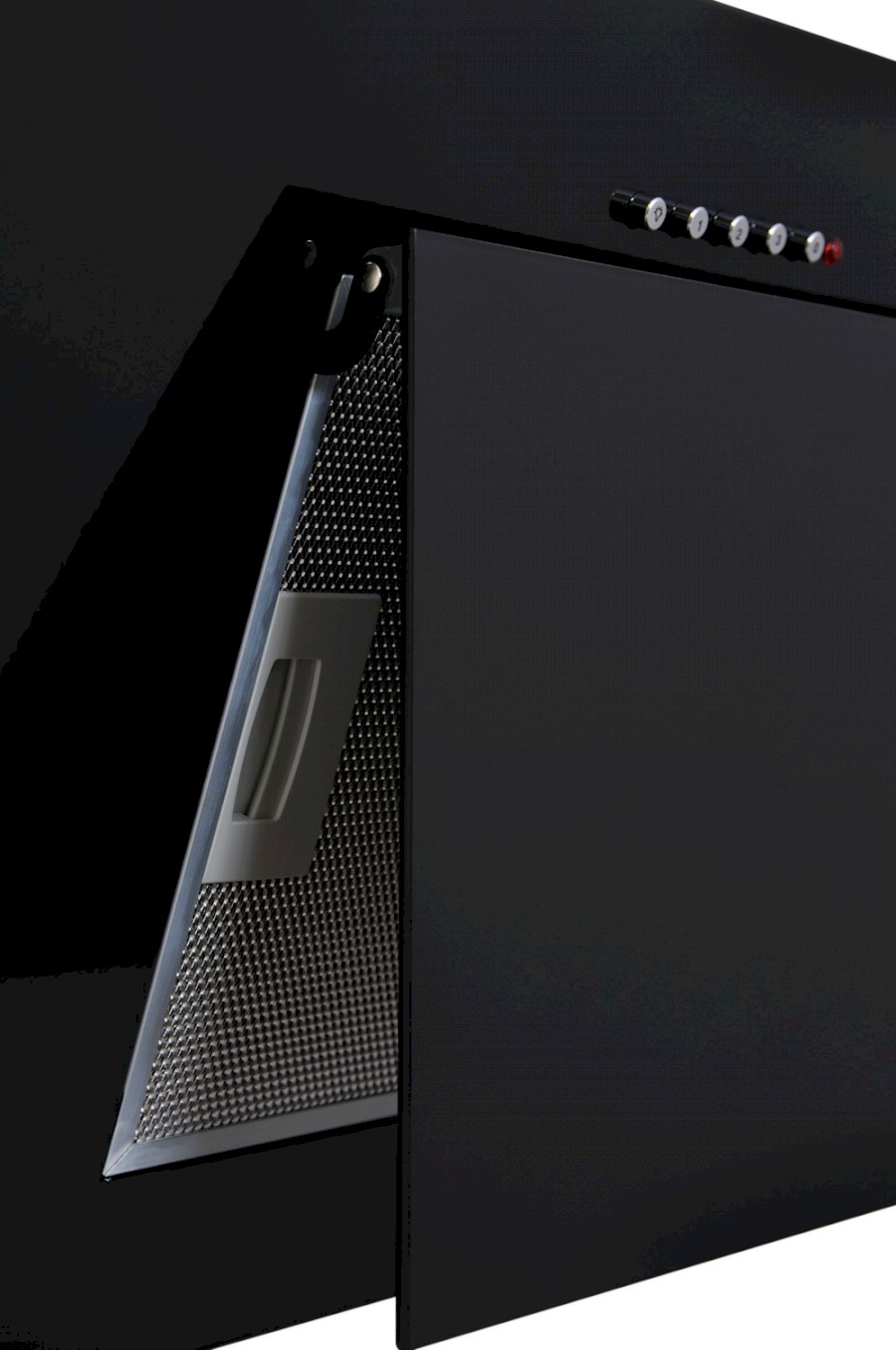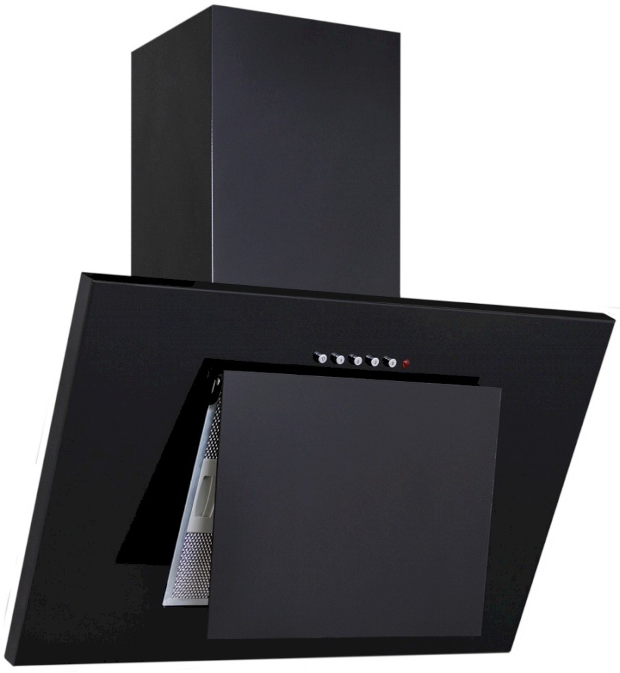 Komínová digestoř ke zdi, šíře 60 cm, černá / černé sklo, max. výkon 326 m³/h (15 Pa), hlučnost Lw 56 – 70 dB(A), 3 rychlosti, odsávací jednotky mají individuálně vyvažovanou turbínu, motory jsou opatřené vratnými tepelnými pojistkami (při přetížení motoru vypne, po jeho vychladnutí opět sepne), mechanické tlačítkové ovládání, kovové sendvičové tukové filtry, které lze mýt v myčce, možnost práce v odtahovém i recirkulačním režimu, výstupní průměr 120 mm, Výbava: úsporné LED osvětlení 2 × 2 W, Benefity: šikmá digestoř zvětšuje manipulační prostor nad varnou deskou a výrazně omezuje riziko bouchnutí se do hlavy o digestoř, šikmá digestoř může být instalovaná o 10-15 cm níž, než digestoře s rovnou spodní částí (snazší dostupnost ovládacích prvku i pro osoby menšího vzrůstu)