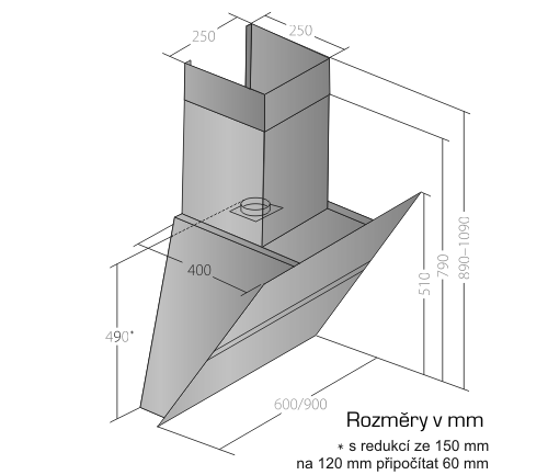 Maximální výkon 697 m³/h (5 Pa) - hlučnost Lw při max. výkonu je 69 dB(A) - odsávací jednotky mají individuálně vyvažovanou turbínu - motory jsou opatřené vratnými tepelnými pojistkami (při přetížení motoru vypne, po jeho vychladnutí opět sepne) - elektronické senzorové ovládání s LED displejem - dálkové ovládání – zdarma dálkový ovladač i s bateriemi - nastavitelný časovač v rozsahu 10 až 60 minut - indikace nutnosti vyčištění tukových filtrů a výměny uhlíkových filtrů - kovové sendvičové tukové filtry, které lze mýt v myčce - výstupní průměr 150 mm – zdarma přiložena redukce 150 mm / 120 mm a zpětná klapka - možnost práce v odtahovém i v recirkulačním režimu