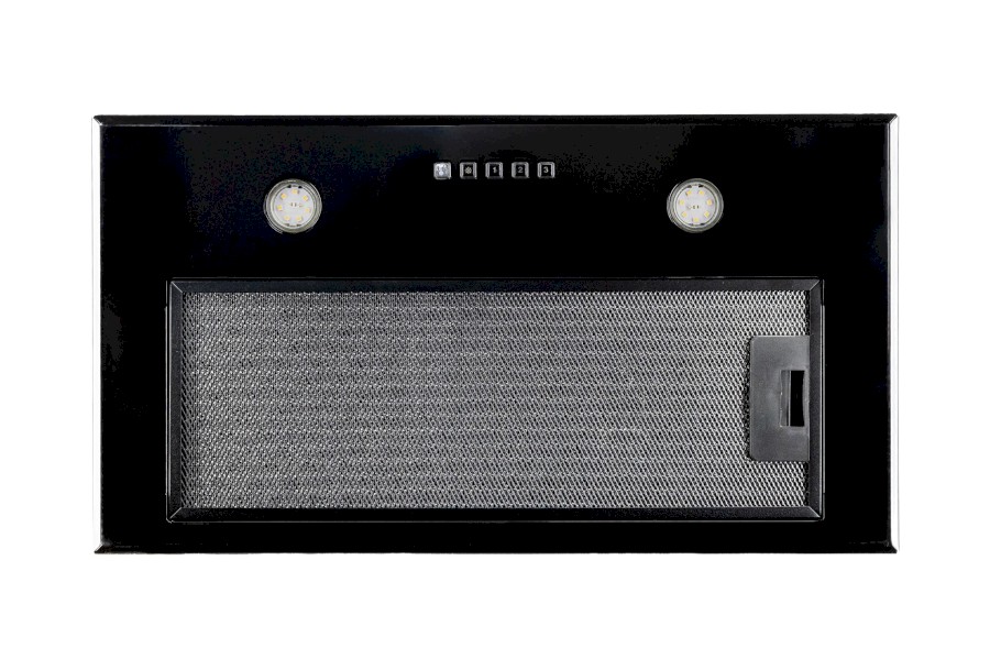 Vestavná digestoř, šíře 60 cm, černá, max. výkon 405 m³/h (5 Pa), hlučnost Lw 44 – 68 dB(A), 3 rychlosti, odsávací jednotky mají individuálně vyvažovanou turbínu, motory jsou opatřené vratnými tepelnými pojistkami (při přetížení motoru vypne, po jeho vychladnutí opět sepne), elektronické tlačítkové ovládání, kovové sendvičové tukové filtry, které lze mýt v myčce, možnost práce v odtahovém i recirkulačním režimu, výstupní průměr 150 mm, Výbava: ovládání gestem - digestoř lze vypnout bezkontaktně pohybem ruky (přiblížením k čidlu), dalším pohybem ji lze opět zapnout (pamatuje si poslední nastavení před vypnutím gestem), úsporné LED osvětlení 2 × 2 W, zdarma redukce na 120 mm a zpětná klapka