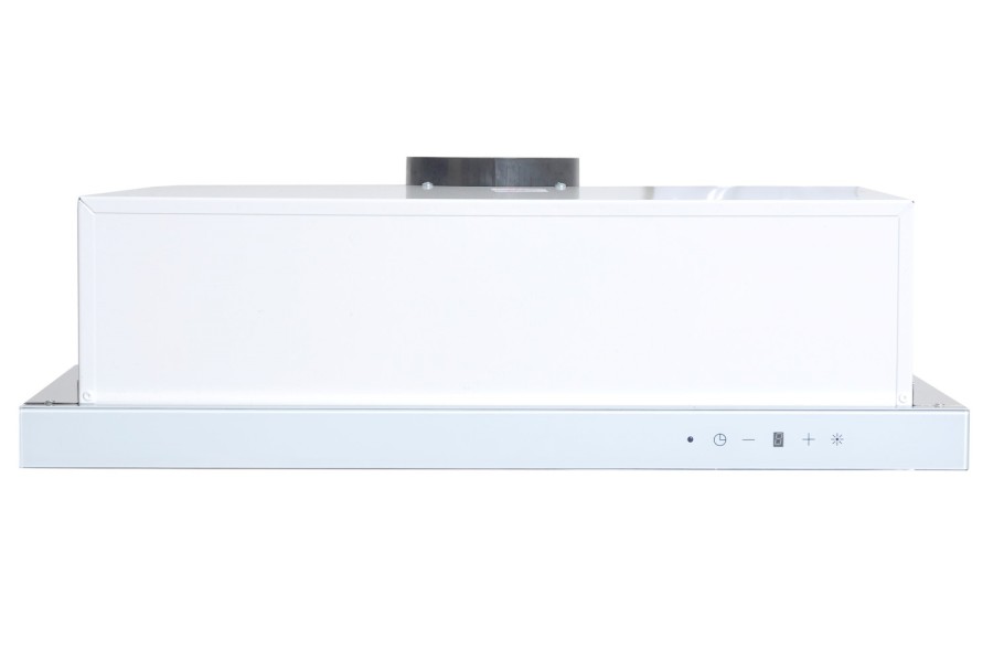 Výsuvná digestoř s listou z bílého skla a s dotykovým ovládáním: Maximální výkon 200 m³/h (15 Pa), 5 rychlostí - hlučnost Lw při max. výkonu je 60 dB(A) - odsávací jednotky mají individuálně vyvažovanou turbínu - motory jsou opatřené vratnými tepelnými pojistkami (při přetížení motoru vypne, po jeho vychladnutí opět sepne) - kovové sendvičové tukové filtry, které lze mýt v myčce - výstupní průměr 120 mm – zdarma zpětná klapka - možnost práce v odtahovém i v recirkulačním režimu– funkce dovětrání (15 min. doběhový časovač)