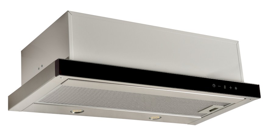 Výsuvná digestoř s listou z černého skla a s dotykovým ovládáním: Maximální výkon 200 m³/h (15 Pa), 5 rychlostí - hlučnost Lw při max. výkonu je 60 dB(A) - odsávací jednotky mají individuálně vyvažovanou turbínu - motory jsou opatřené vratnými tepelnými pojistkami (při přetížení motoru vypne, po jeho vychladnutí opět sepne) - kovové sendvičové tukové filtry, které lze mýt v myčce - výstupní průměr 120 mm – zdarma zpětná klapka - možnost práce v odtahovém i v recirkulačním režimu– funkce dovětrání (15 min. doběhový časovač)