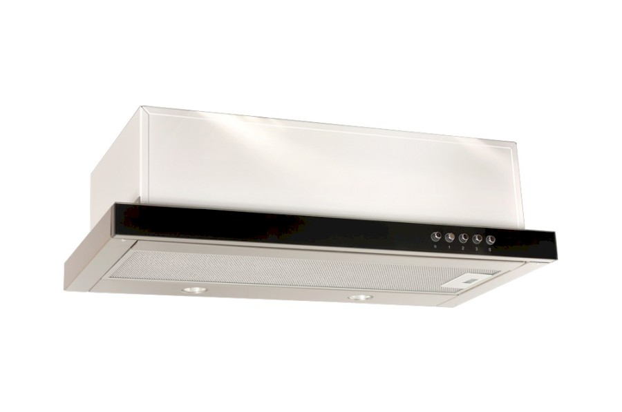 Vestavná výsuvná digestoř, šíře 60 cm, černá s černou skleněnou lištou, max. výkon 427 m³/h (15 Pa), hlučnost Lw 45 – 69 dB(A), 3 rychlosti, odsávací jednotky mají individuálně vyvažovanou turbínu, motory jsou opatřené vratnými tepelnými pojistkami (při přetížení motoru vypne, po jeho vychladnutí opět sepne), mechanické tlačítkové ovládání, kovové sendvičové tukové filtry, které lze mýt v myčce, možnost práce v odtahovém i recirkulačním režimu, výstupní průměr 150 mm, Výbava: úsporné LED osvětlení 2 × 2 W, zdarma redukce na 120 mm a zpětná klapka