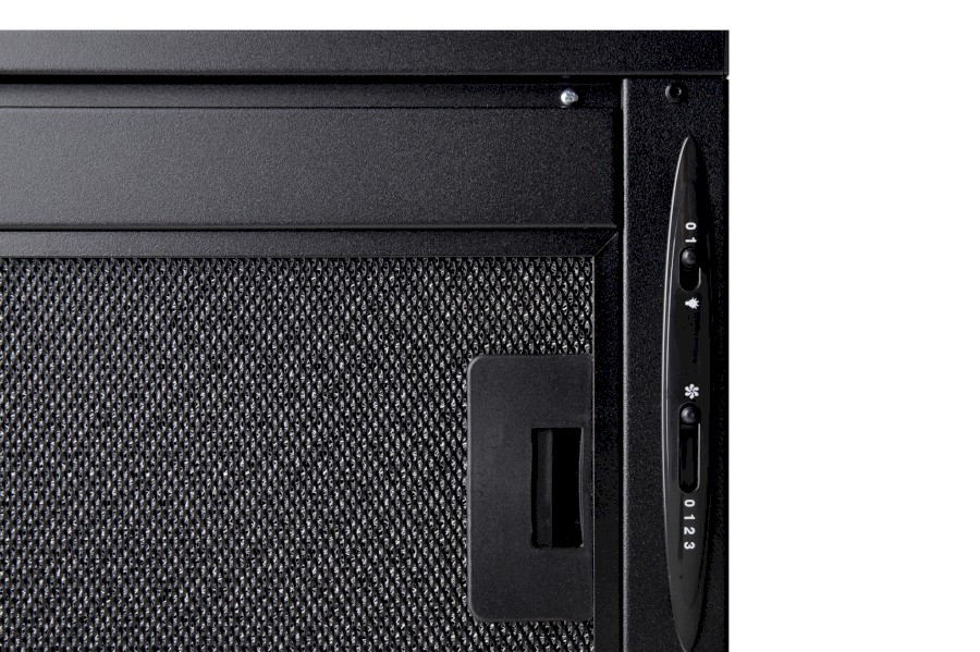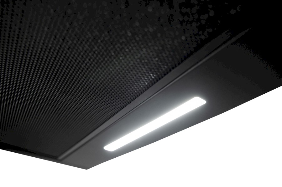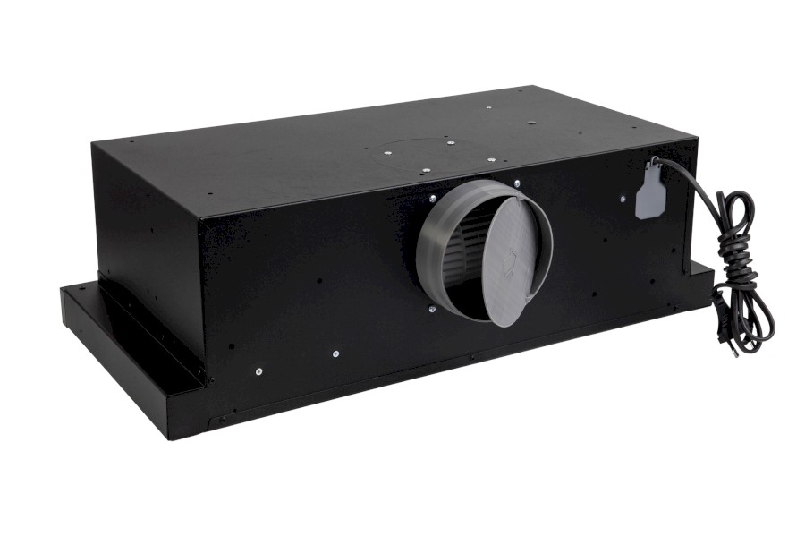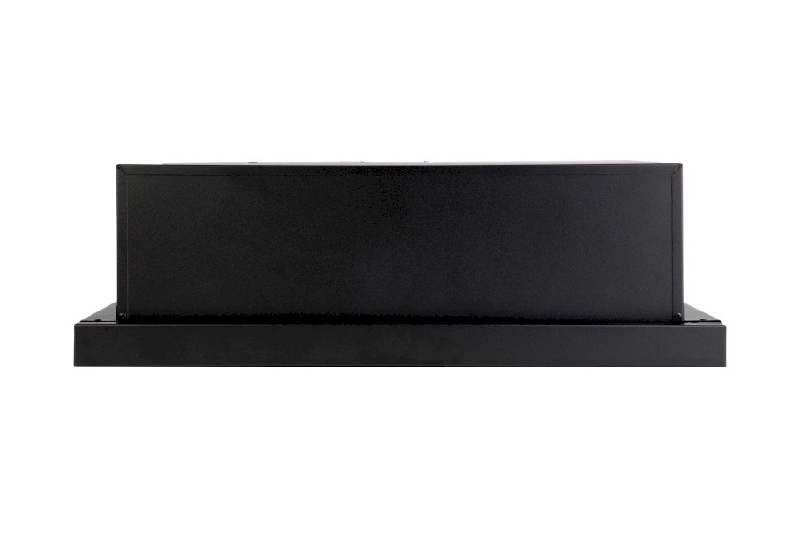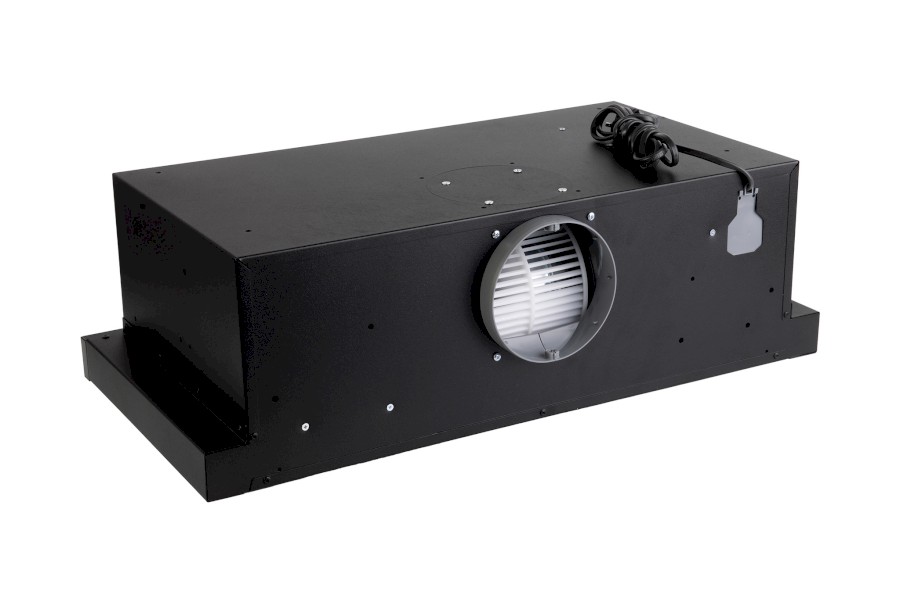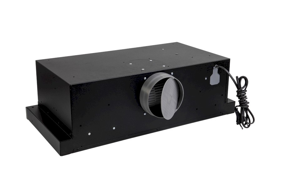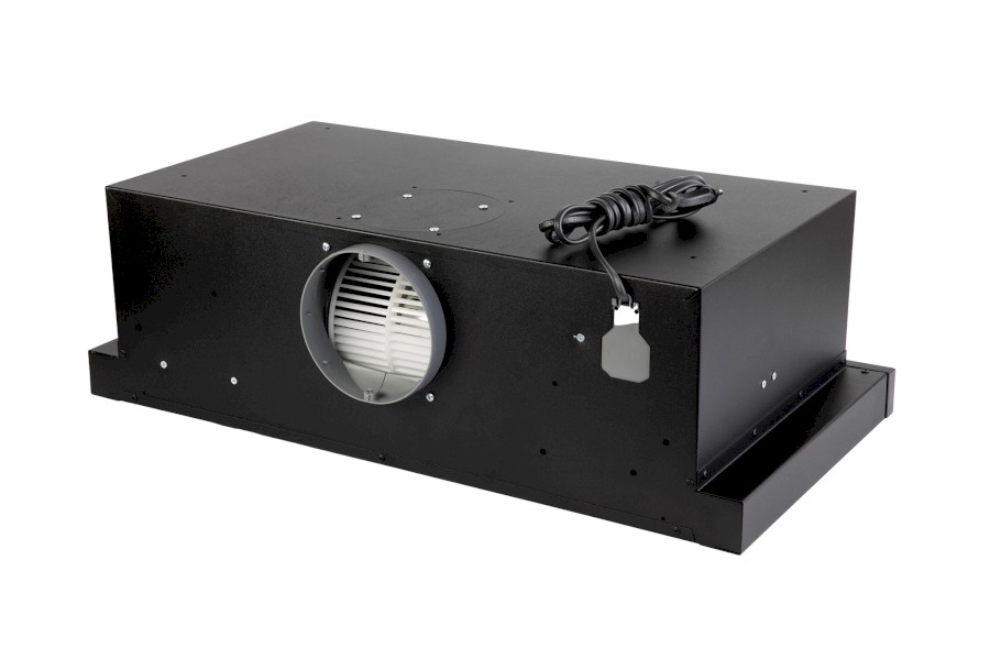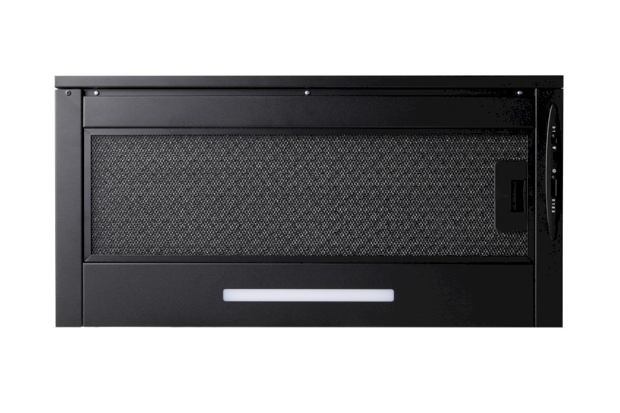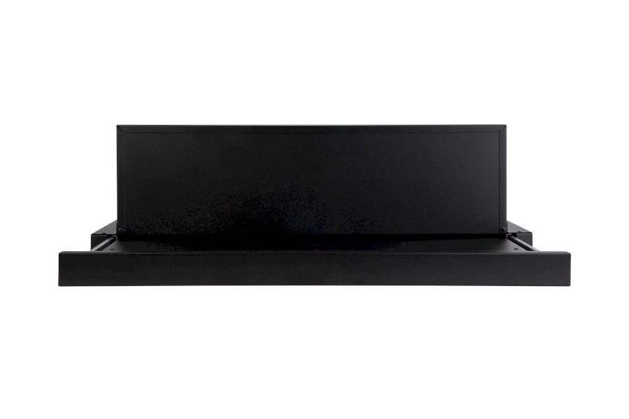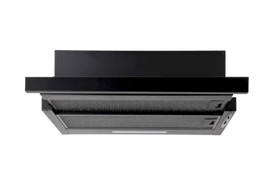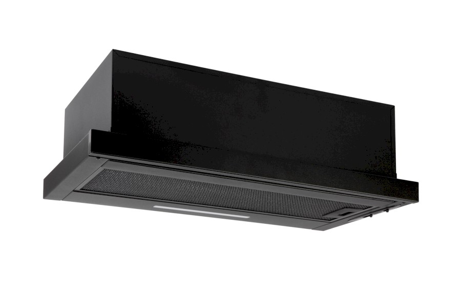 Vestavná digestoř výsuvná, jediná na trhu s odtahem dozadu nebo nahoru (oba 120 mm), šíře 60 cm, černá, max. výkon 338 m³/h (15 Pa), hlučnost Lw 56 – 71 dB(A), 3 rychlosti, odsávací jednotky mají individuálně vyvažovanou turbínu, motory jsou opatřené vratnými tepelnými pojistkami (při přetížení motoru vypne, po jeho vychladnutí opět sepne), mechanické posuvné ovládání, kovové sendvičové tukové filtry, které lze mýt v myčce, možnost práce v odtahovém i recirkulačním režimu, Výbava: úsporné LED osvětlení 1 × 2,8 W (LED pásek), zdarma zpětná klapka