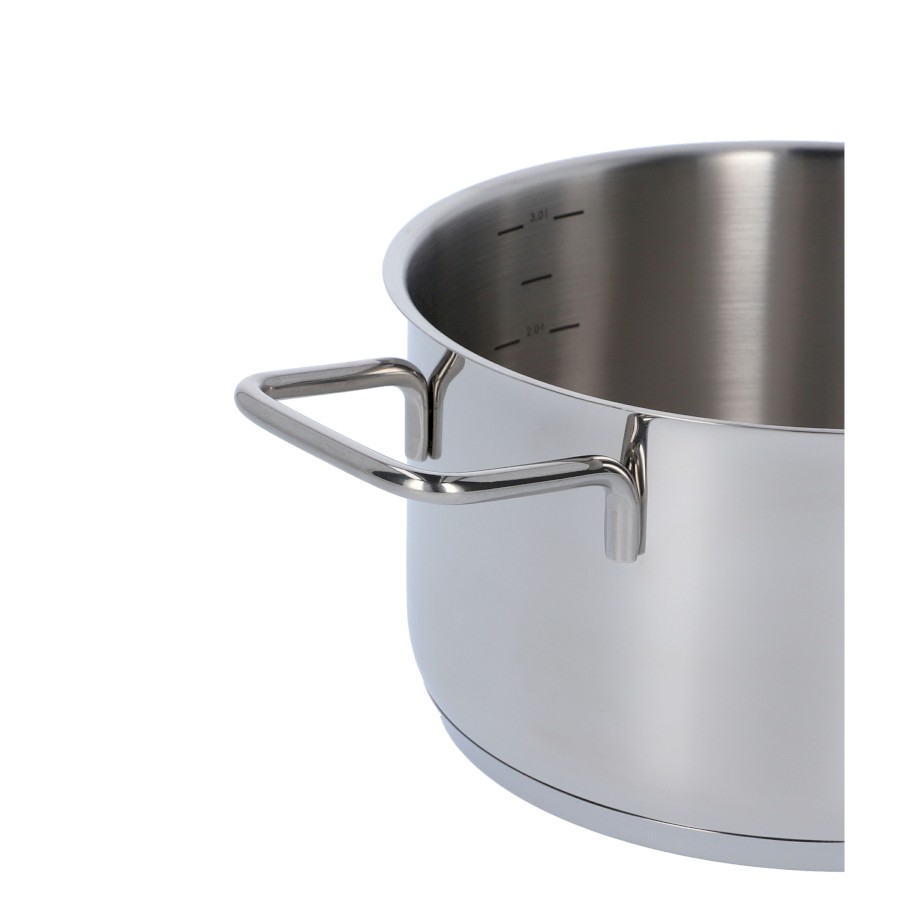 Atraktivní design z leštěného nerezu, promyšlené detaily (odměrné značky, skleněné poklice s ventily pro odvod páry), kvalitní zpracování (sendvičová dna, pevné spoje), špičkové materiály (jediná nerez sada na trhu s nerez pánví s odolným teflonovým povrchem), výhodná cena. Nádobí lze mýt v myčce.