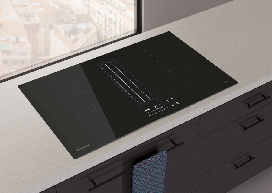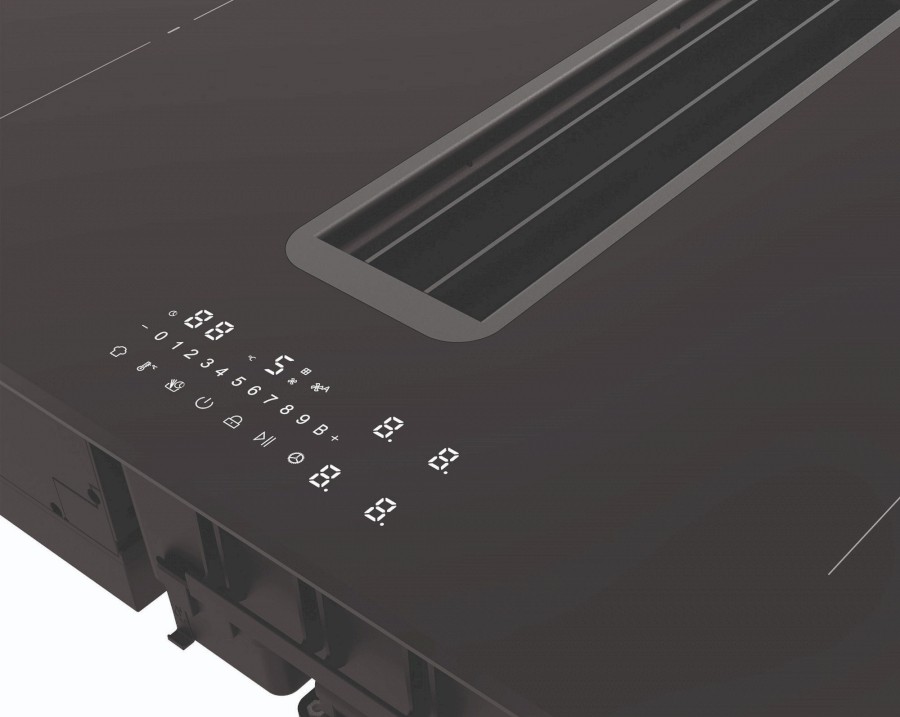 ✅ Integrovaný odsavač par: S maximálním průtokem vzduchu 691 m³/h, dotykovým ovládáním s 5+1 TURBO nastaveními a nízkou hlučností v rozmezí 50 až 74 dB(A). Bezkartáčový motor zajišťuje tišší provoz, vyšší účinnost, přesné elektronické řízení, delší životnost a menší produkci tepla. Automatické řízení výkonu digestoře podle nastavených stupňů na jednotlivých varných zónách s možností přepnutí na manuální volbu výkonu.