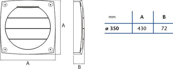 Venkovní mřížka k ventilátorům CATA LHV 350 – se spádovými žaluziemi