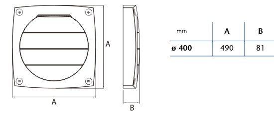 Venkovní mřížka k ventilátorům CATA LHV 400 – se spádovými žaluziemi