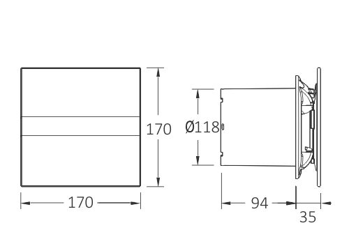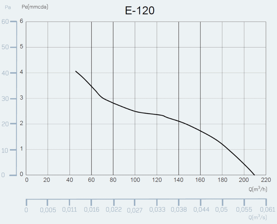 Průměr odtahu: 120 mm, Barva: Bílá - skleněný čelní panel, Příkon motoru: 11 W, Otáček/min.: 2400, Max. sací výkon: 210 m³/hod, Max. tlak: 40 Pa, Max. délka odtahu: 4 m, Hlučnost - 2 m: 33 dB(A), Stupeň krytí: IP44, Montážní poloha: Na zeď i do stropu, Motor s kuličkovými ložisky