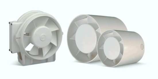 Potrubní ventilátor axiální, pr. 100 mm, 98 m³/h, 43 dB(A), 3 mmH2O (29 Pa), IPX2