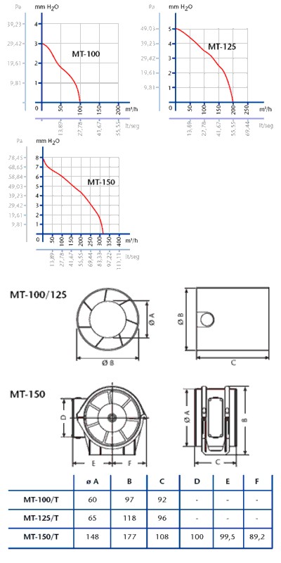 Potrubní ventilátor axiální, pr. 100 mm, 98 m³/h, 43 dB(A), 3 mmH2O (29 Pa), IPX2, doběhový časovač