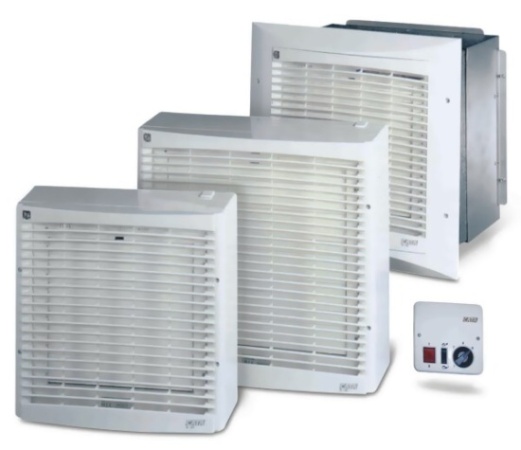 Ventilační jednotka na zeď či do okna, pr. 305 mm, 1900 m³/h (odtah) / 700 m³/h (sání), 51 dB(A), IPX4. 5 rychlostní reg. v ceně, reverzace, elektricky ovládaná žaluzie