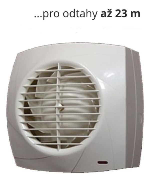 Radiální ventilátor na zeď či do stropu, pr. 100/120 mm (2 příruby součástí dodávky), 270 m³/h, 52 dB(A), 23 mmH2O (225 Pa), IPX4